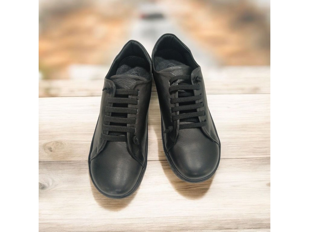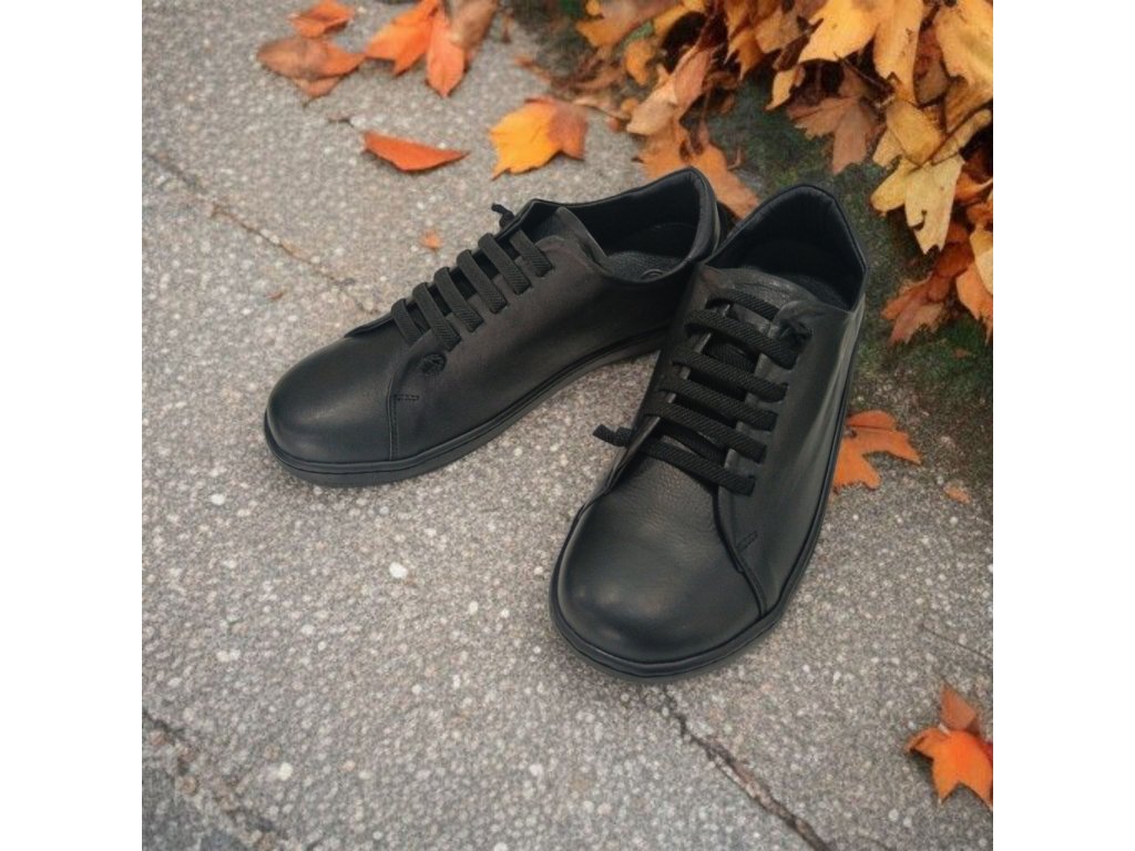 Stylové městské boty značky beBare s minimalistickým střihem a kompromisním barefoot provedením v černé barvě, vhodné i pro širší chodidlo