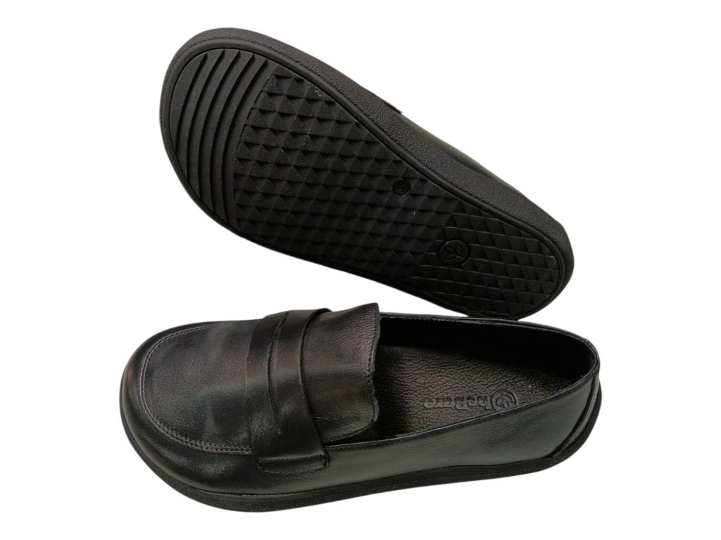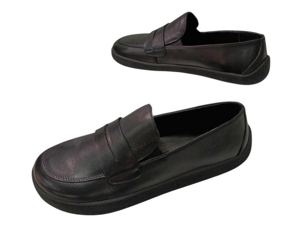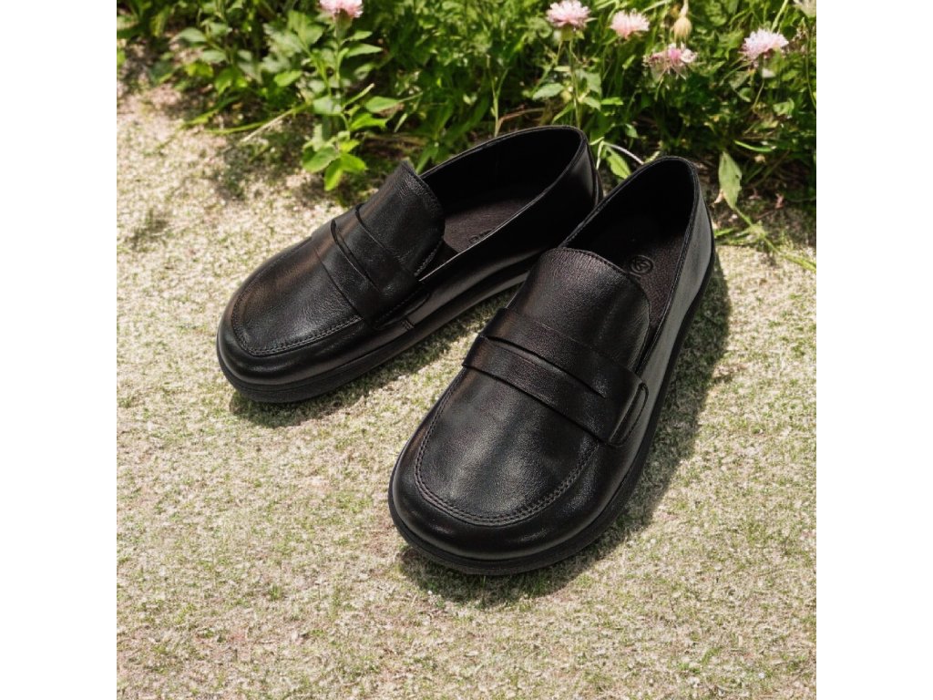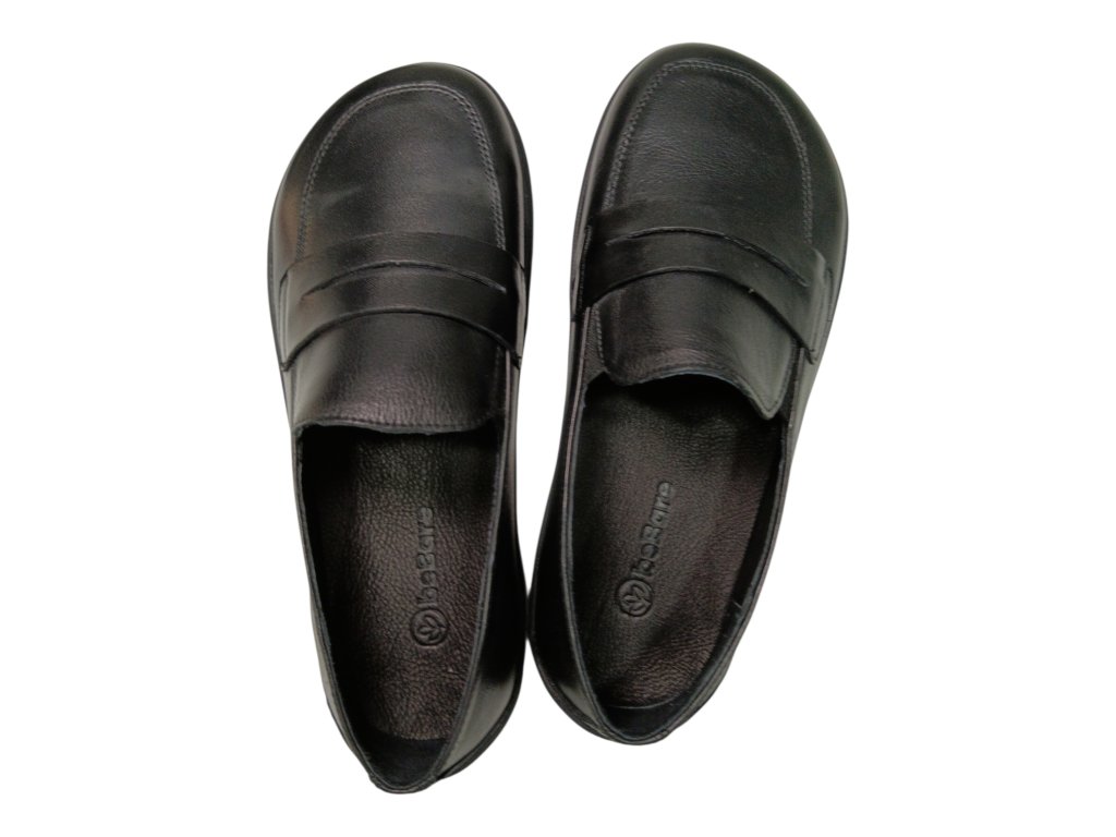 Elegantní černé beBare barefoot mokasíny z kvalitní kůže, které respektují přirozený tvar chodidla.