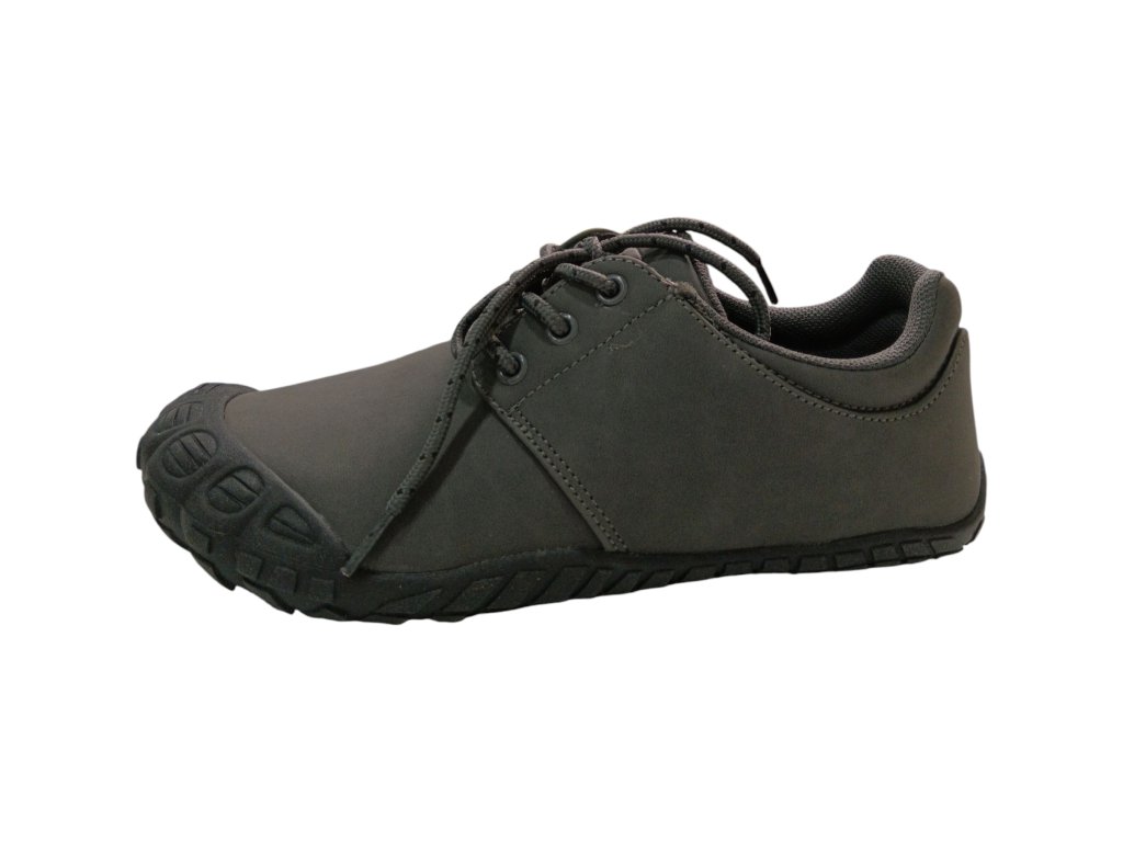 Dámská celoroční barefoot obuv s ochranou špičkou, v šedé barvě se šněrováním v místě nártu od firmy ROCK SPRING.