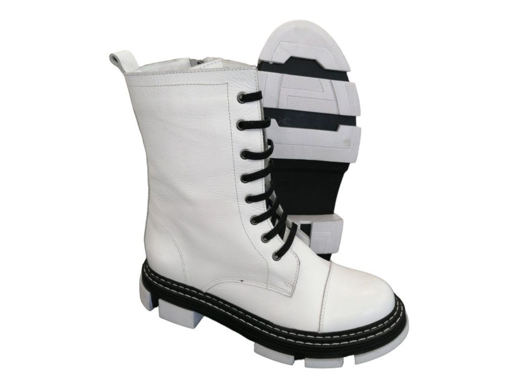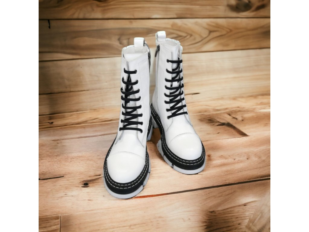 Vyšší kotníkové boty v bílé barvě v kombinaci s černou.