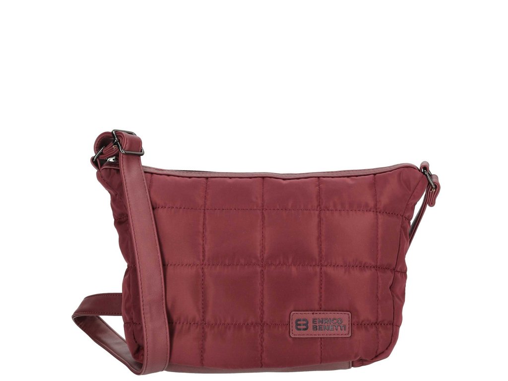 Stylová a praktická bordo kabelka Enrico Benetti je ideálním doplňkem pro každodenní použití i elegantní večerní příležitosti. Tato přes rameno nositelná kabelka je vyrobena z lehkého syntetického materiálu s trendy prošívaným povrchem, který dodává moderní vzhled. Elegantní design je zvýrazněn prvky z umělé kůže, včetně řemínku, obšití zipů a loga značky na přední straně.