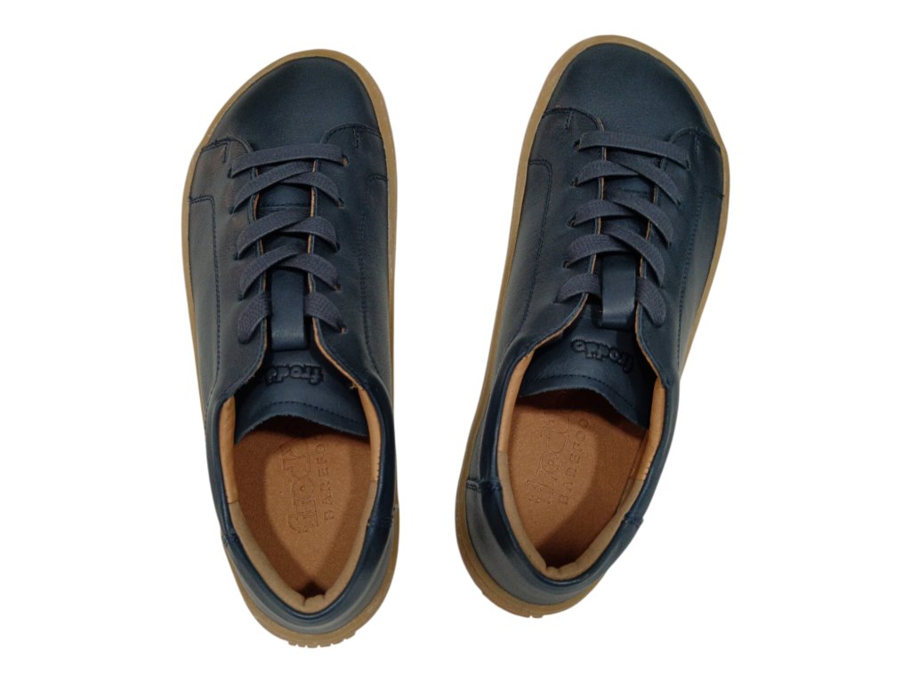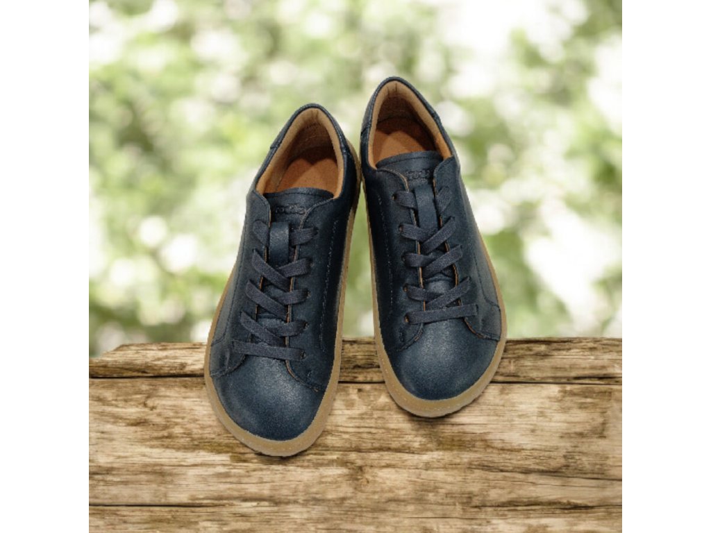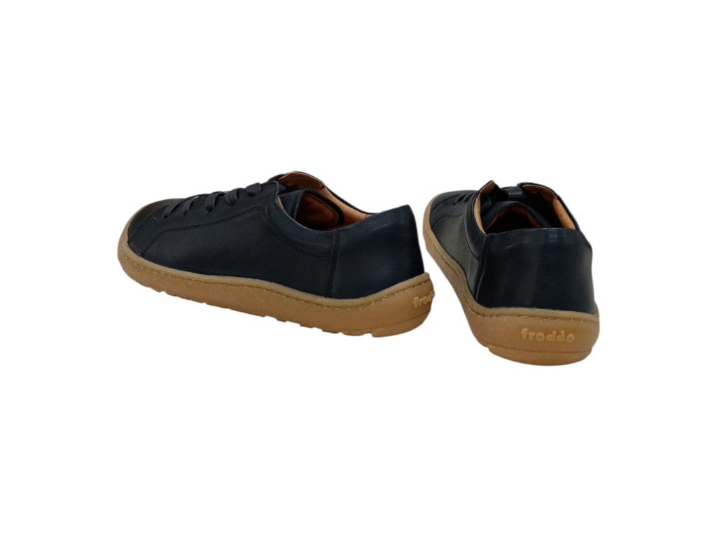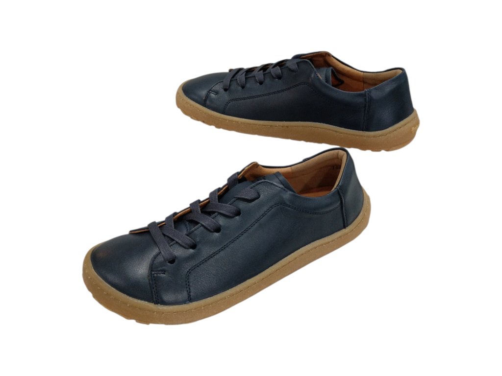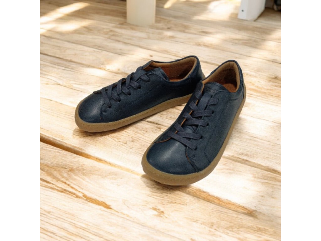 Měkké a lehké barefoot boty Froddo z hladké tmavě modré kůže s flexibilní gumovou podrážkou. Poskytují dostatek prostoru pro prsty, kožené pohodlí a vyjímatelnou antibakteriální stélku.