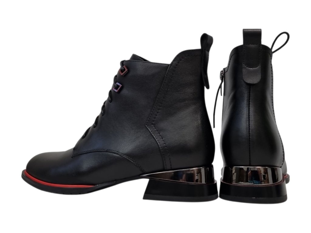 Dámská kožená obuv značky Ladies je vysoce kvalitní podzimní a zimní obuv vyráběná z hlazené hovězí kůže . Krásně se přizpůsobí tvaru nohy díky šněrování na kulaté tkaničky, obuv je tedy pohodlná a zároveň odolná. Zip na vnitřní straně je ideální pro pohodlné obouvání. Důležitou vlastností je i menší propustnost vlhkosti. Tyto kožené dámské kotníkové boty jsou vhodné pro chůzi ve městě po pevném povrchu, zároveň se však hodí i na chůzi v přírodě.