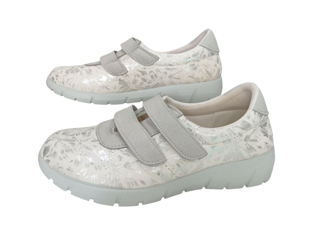 • Vzor: tištěné stříbrné květy po celém svršku boty