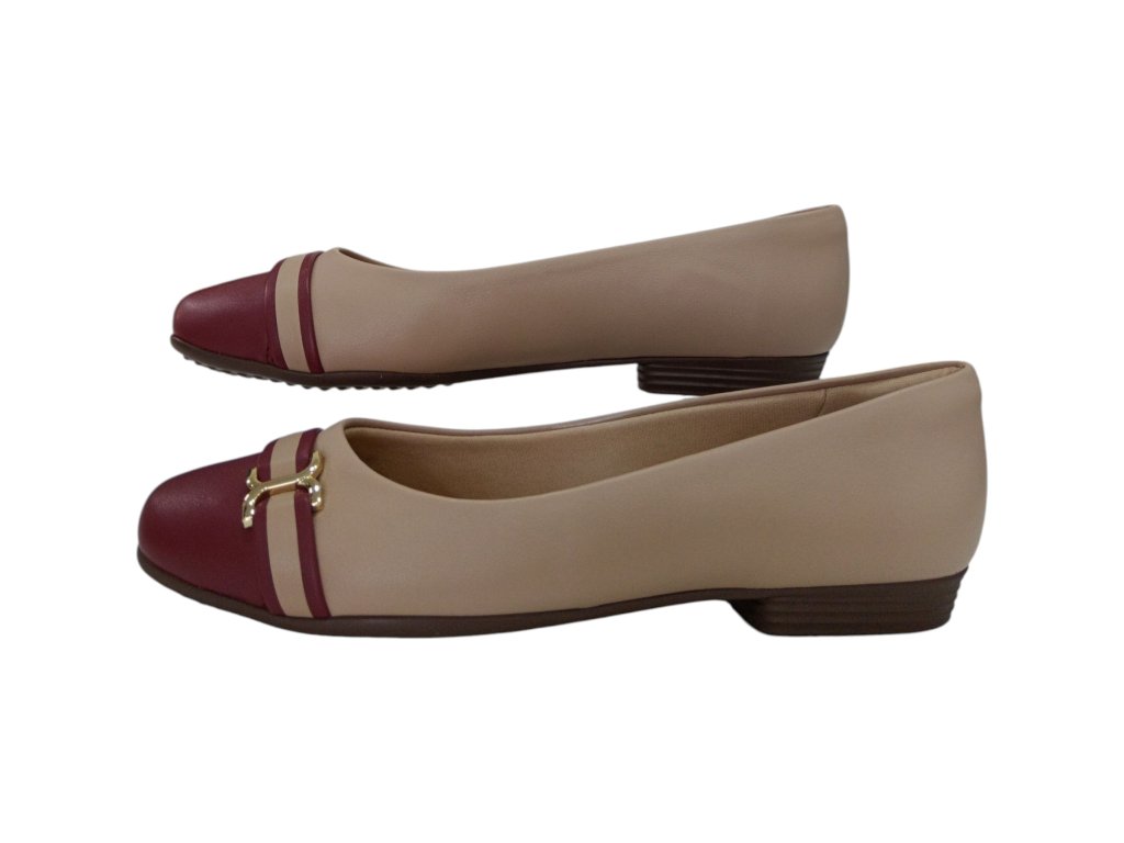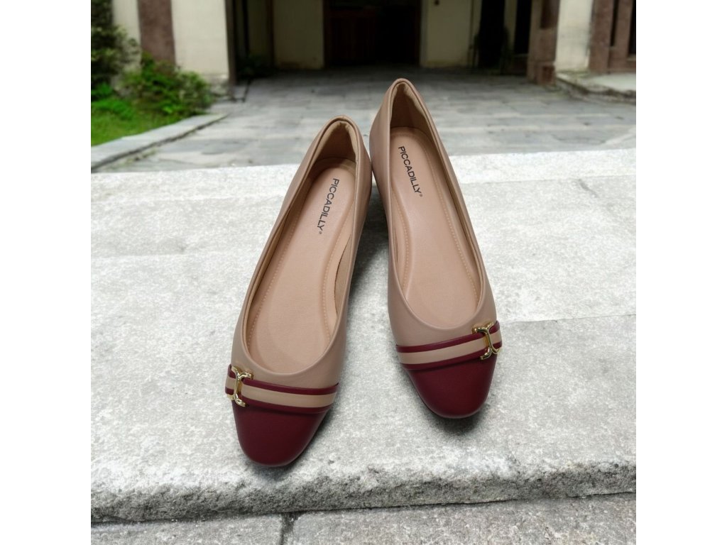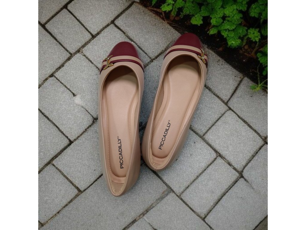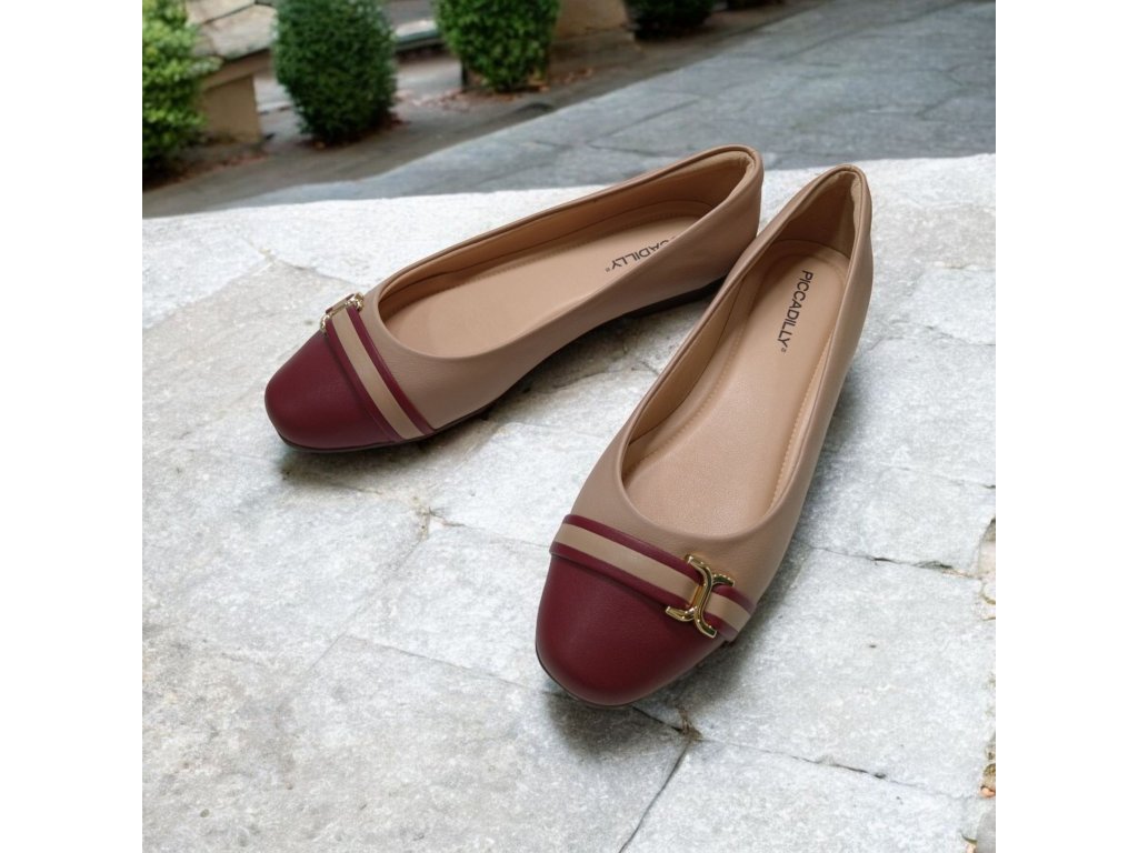 Dámské baleríny na nízkém podpatku od brazilské značky PICCADILLY v kombinaci barev béžové a vínové