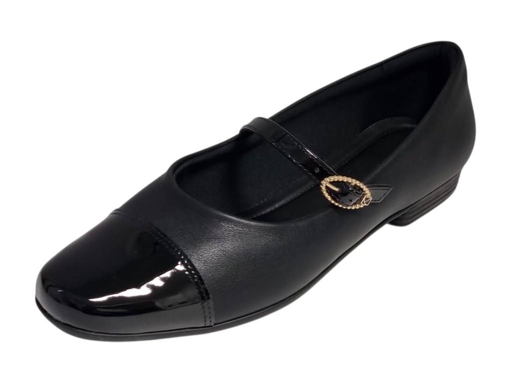- 👠 Styl: Elegantní baleríny na nízkém klínku s lakovanou špičkou a nastavitelným páskem přes nárt