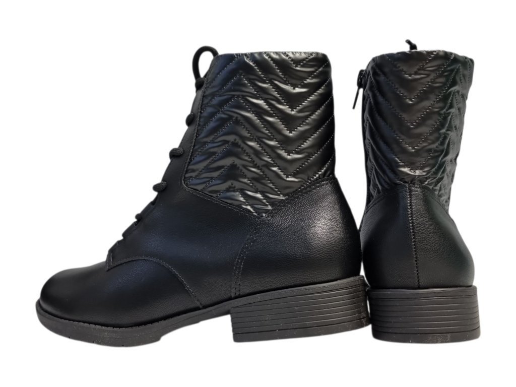 Svršek bot je vyroben ze syntetického materiálu vysoké kvality, který je měkký a přizpůsobivý, zároveň se snadno udržuje. Uvnitř najdete jemnou podšívku, jež zajišťuje příjemné teplo a pohodlí po celý den. Obuv se pohodlně nazouvá díky zipu na vnitřní straně, takže se nemusíte zdržovat šněrováním. Podpatek i podešev jsou navrženy tak, aby poskytly stabilní krok a optimální oporu – ideální pro ženy, které tráví hodně času na nohou.
