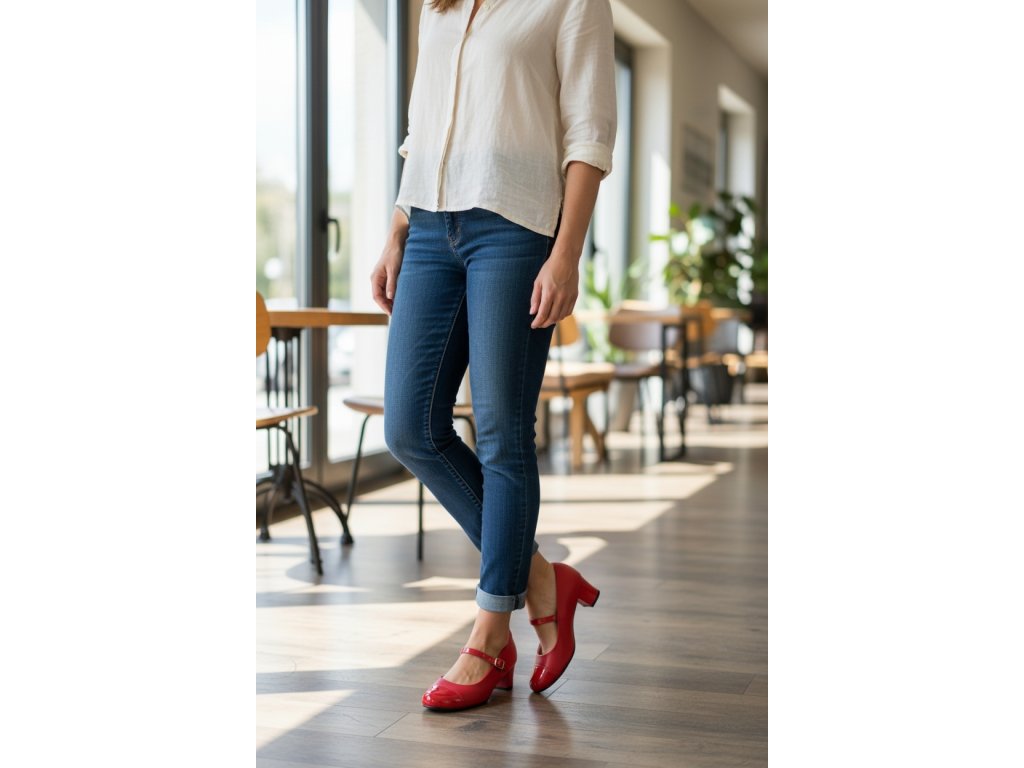 Elegantní dámské lodičky Piccadilly v jasně červené barvě s lakovanou špičkou a stabilním 5cm podpatkem.