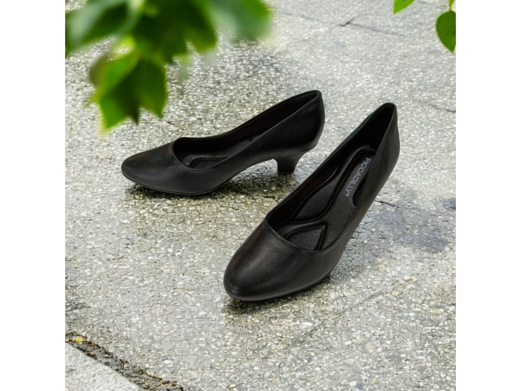 Lodičky mají klasický, elegantní střih s uzavřenou špičkou a stabilním vyšším podpatkem. Jsou vyrobeny ze speciálního NAPA materiálu, který se přirozeně přizpůsobuje tvaru chodidla a zajišťuje vysoký komfort při nošení.