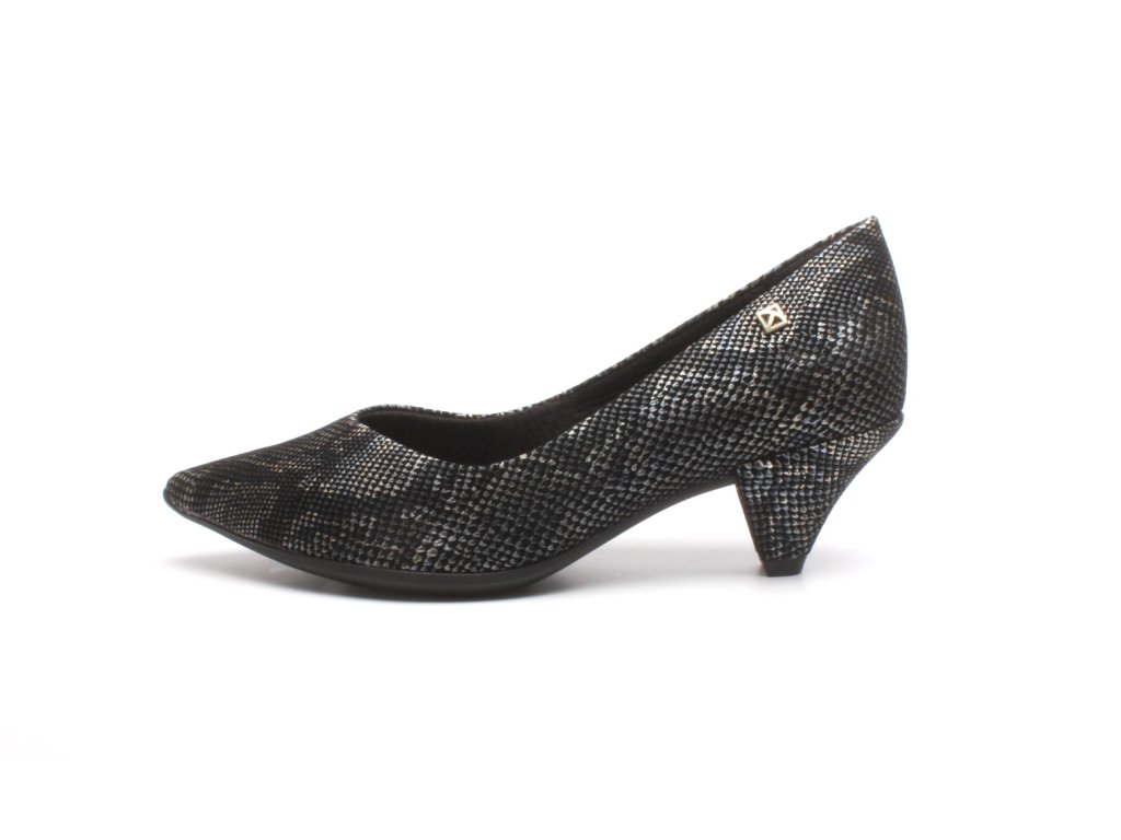 Dámské lodičky Piccadilly v černé barvě s hadím vzorem na nízkém podpatku.