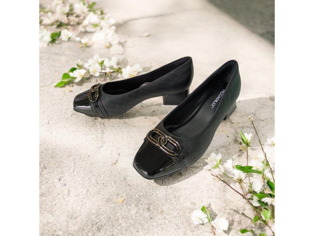 Nadčasové černé lodičky působí velmi žensky, elegantně a snadno se kombinuje s formálním i volnočasovým outfitem. Decentní kovová ozdoba na špičce dodává botám moderní a sofistikovaný vzhled.