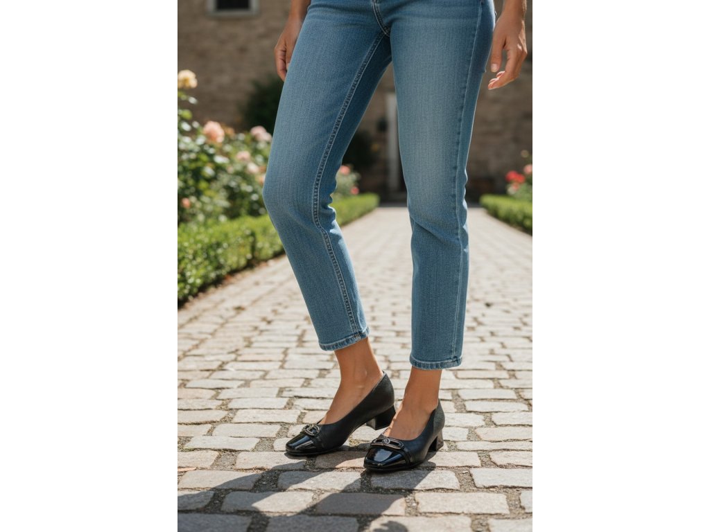 Středně vysoký, širší podpatek (cca 3,5 cm) je ideální pro celodenní nošení – nabízí stabilitu bez zbytečné zátěže chodidel.