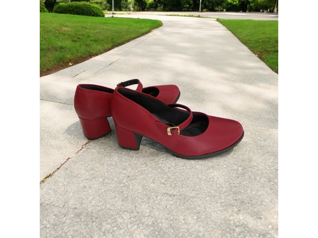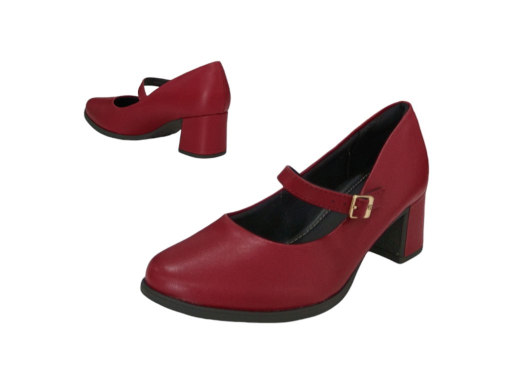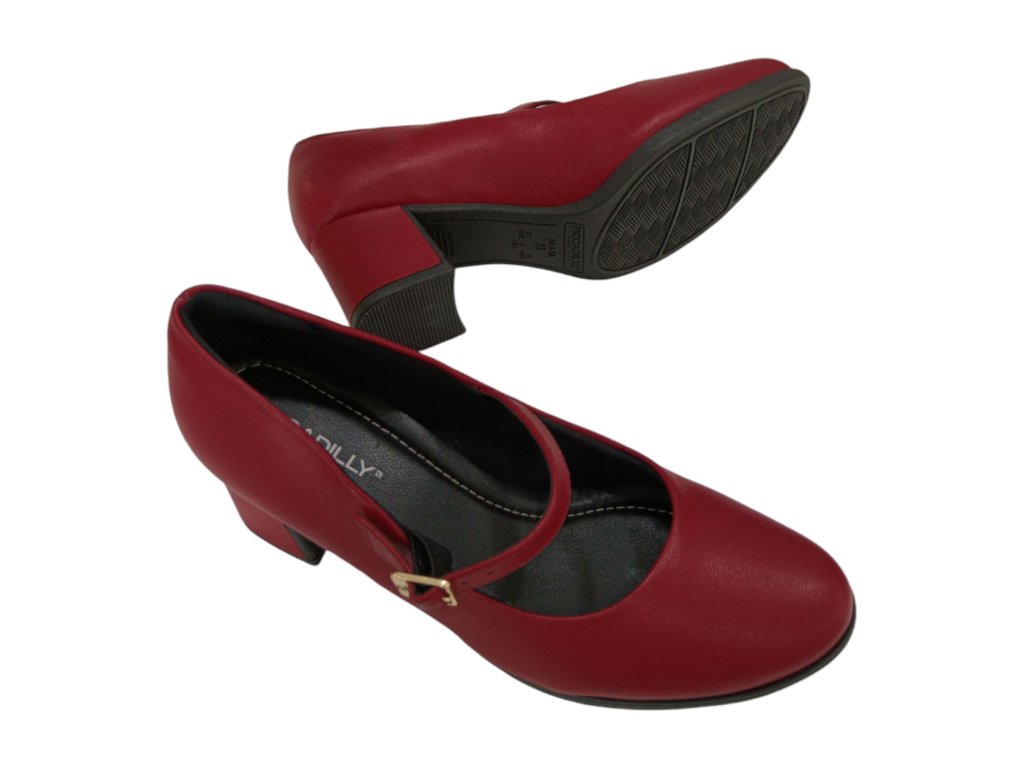 Dámské lodičky na středním podpatku v bordó barvě s páskem přes nárt od brazilské značky PICCADILLY.