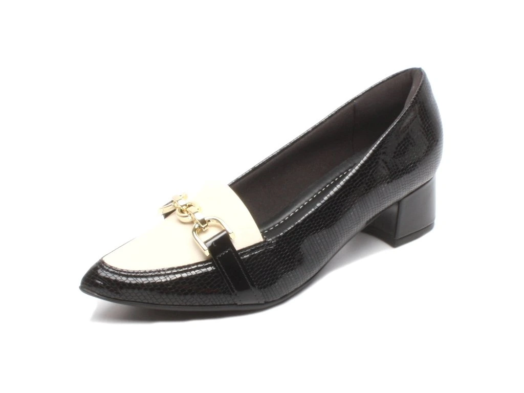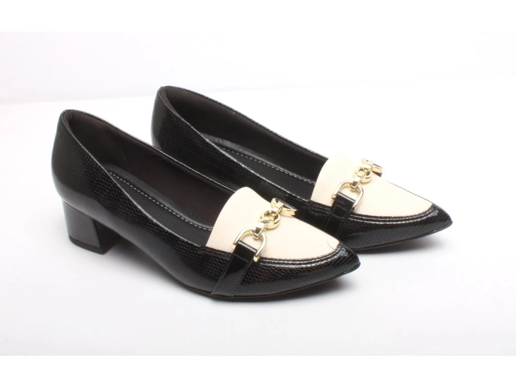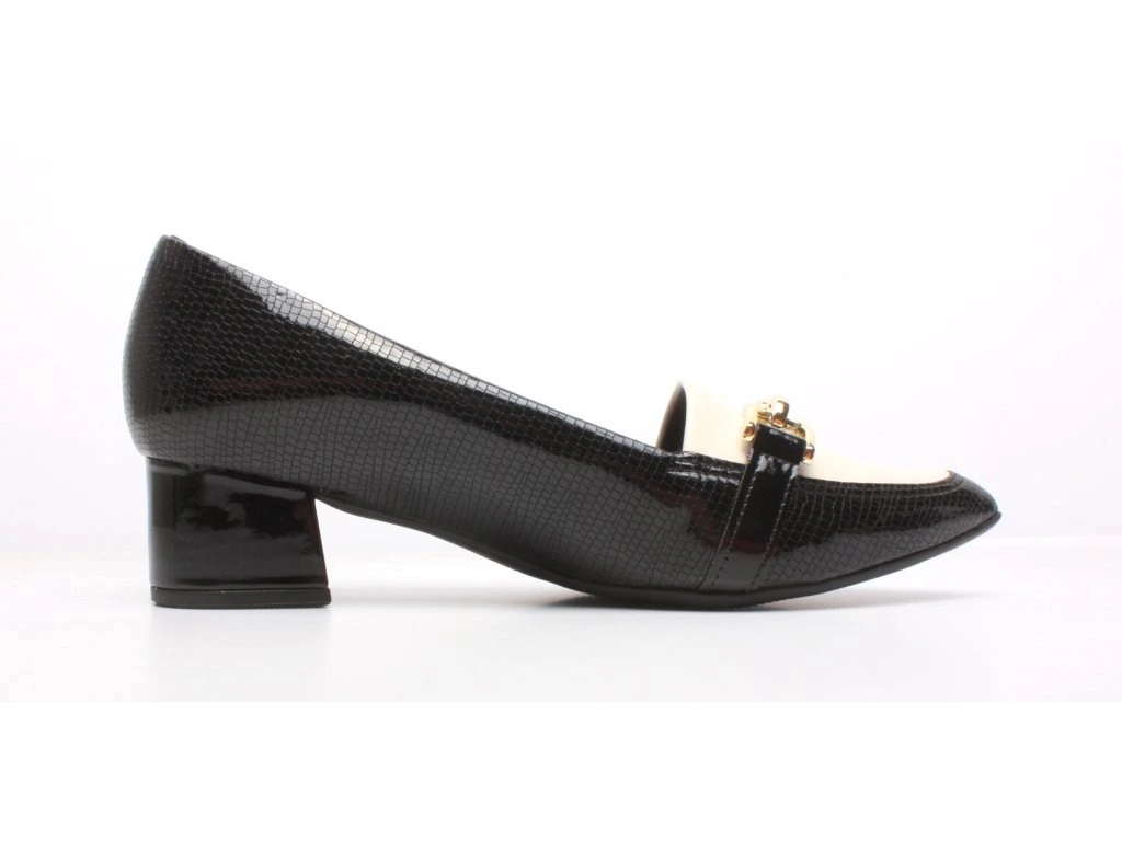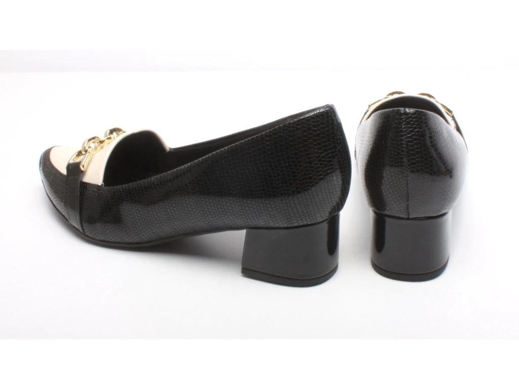 - barva černá - lakovaná s bílou vsadkou na nártu a zlacenou sponou