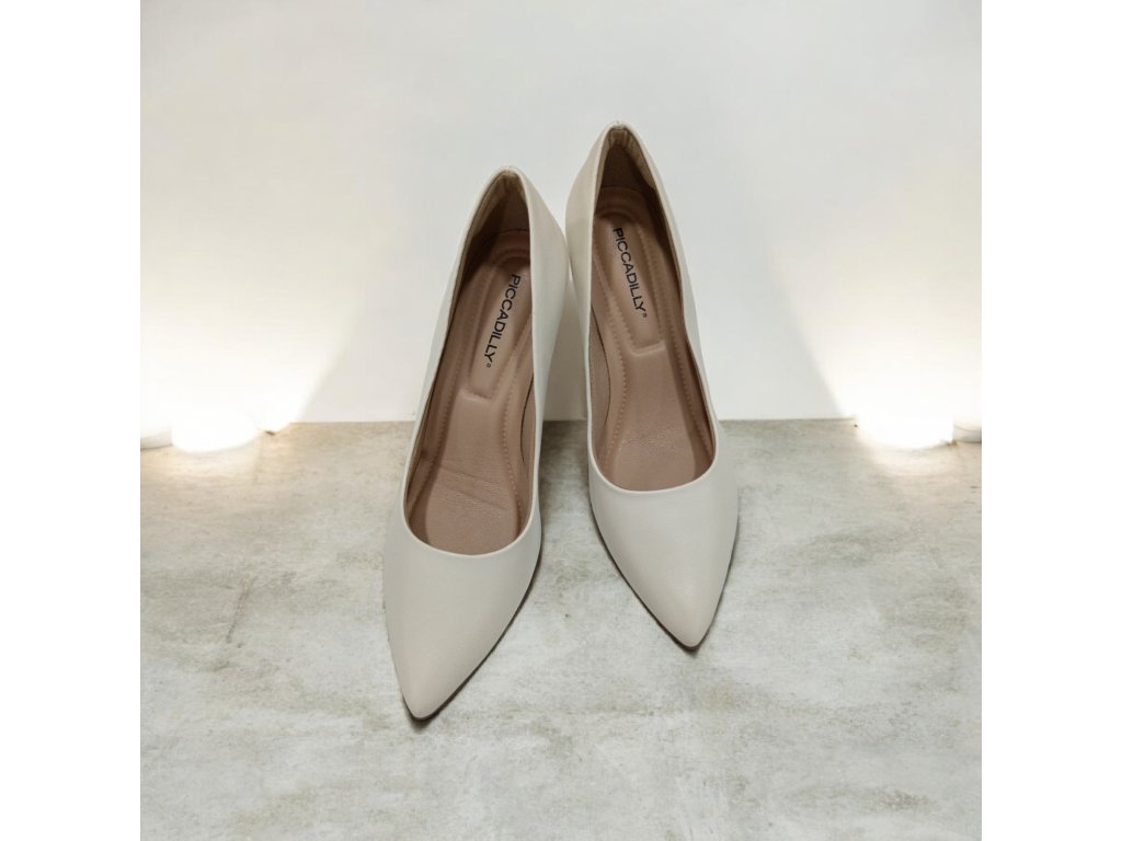 Dámské lodičky Piccadilly jsou provedeny v elegantní světlé krémové / slonovinové barvě . Teplá off-white s jemným béžovým podtónem, ne čistě bílá. Povrch je hladký, lehce matný, bez výrazného lesku. působí luxusně a nadčasově, snadno se kombinuje se společenskými i formálnějšími outfity a je ideální volbou na slavnostní příležitosti i pracovní schůzky.