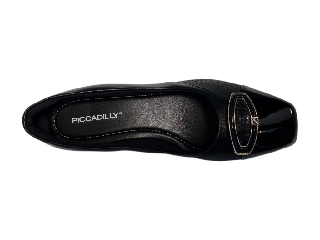 Dámské lodičky brazilské značky Piccadilly řady Joanete na podpatku, kombinují eleganci s maximálním pohodlím. Speciální konstrukce v oblasti nártu je rozšířená a flexibilní, díky čemuž se přizpůsobí chodidlu a poskytuje úlevu při hallux valgus (vbočeném palci) i dalších deformitách prstů.