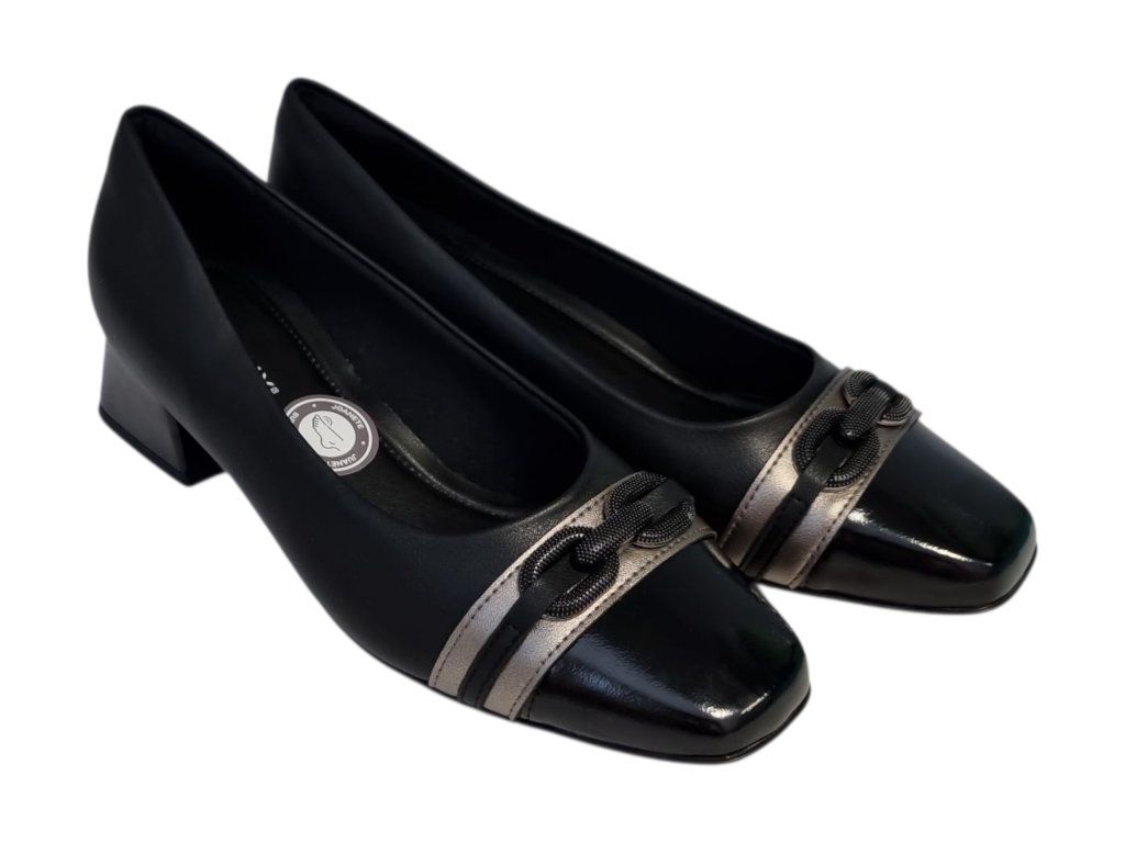 Dámské lodičky brazilské značky Piccadilly řady Joanete na podpatku, kombinují eleganci s maximálním pohodlím. Speciální konstrukce v oblasti nártu je rozšířená a flexibilní, díky čemuž se přizpůsobí chodidlu a poskytuje úlevu při hallux valgus (vbočeném palci) i dalších deformitách prstů.