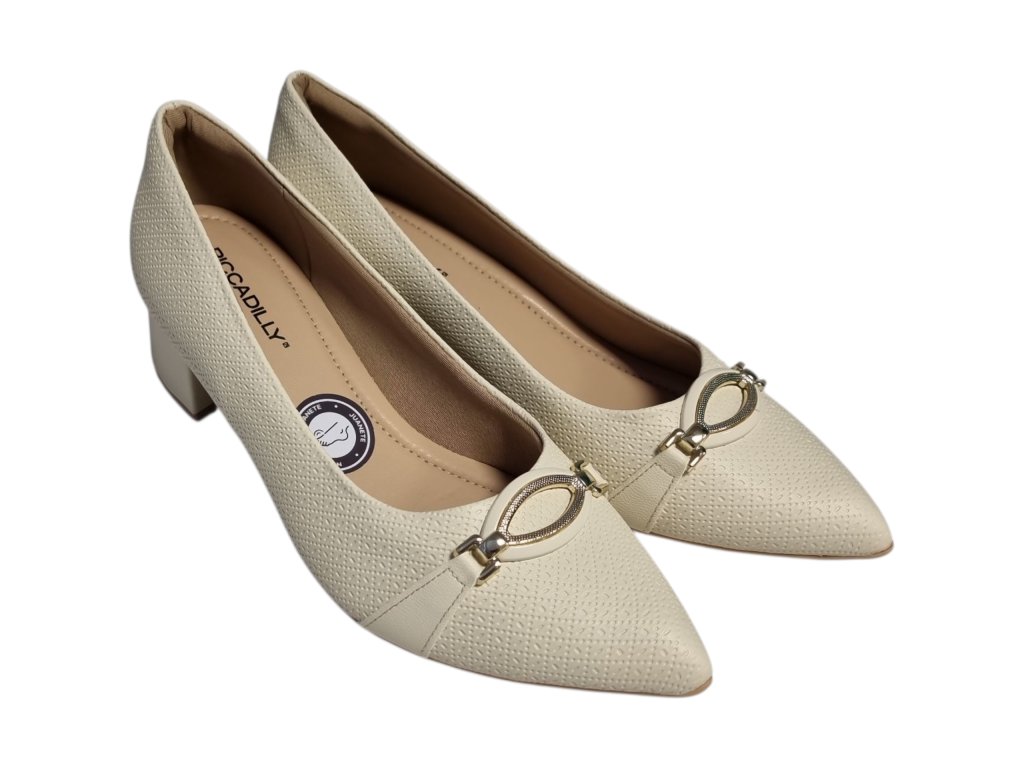 Dámské lodičky brazilské značky Piccadilly řady Joanete na podpatku, kombinují eleganci s maximálním pohodlím. Speciální konstrukce v oblasti nártu je rozšířená a flexibilní, díky čemuž se přizpůsobí chodidlu a poskytuje úlevu při hallux valgus (vbočeném palci) i dalších deformitách prstů.