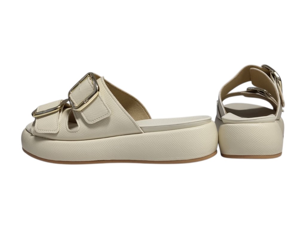 - přes nárt dva široké nastavitelné pásky na zlatou přezku