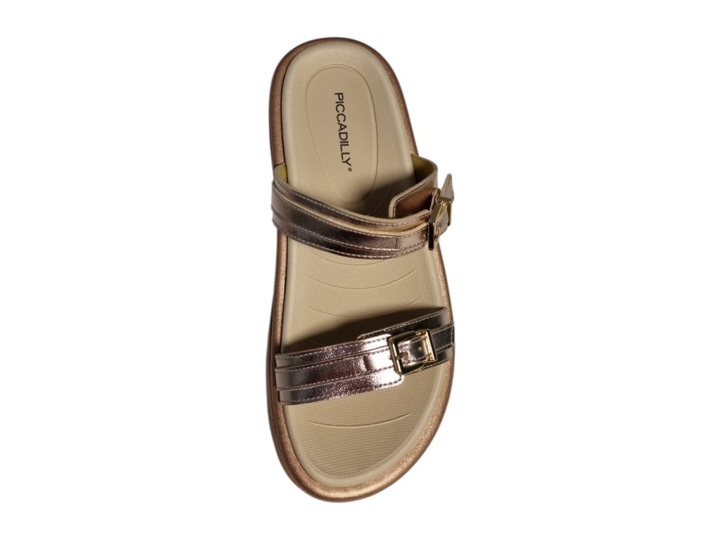 Dámská obuv brazilské značky Piccadilly z řady WIDEFIT je velmi luxusní a komfortní. Tyto pantofle poskytují skvělou ventilaci a pohodlí pro dlouhé nošení v teplém počasí. Řada WIDEFIT je vhodná pro širší chodidla. Lze je kombinovat s širokou škálou ležérních outfitů. Přes nárt jsou dva nastavitelné pásky, které poskytují náležité pohodlí při chůzi.