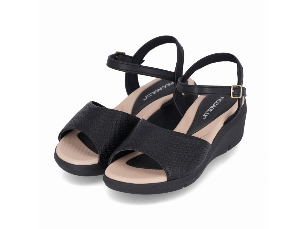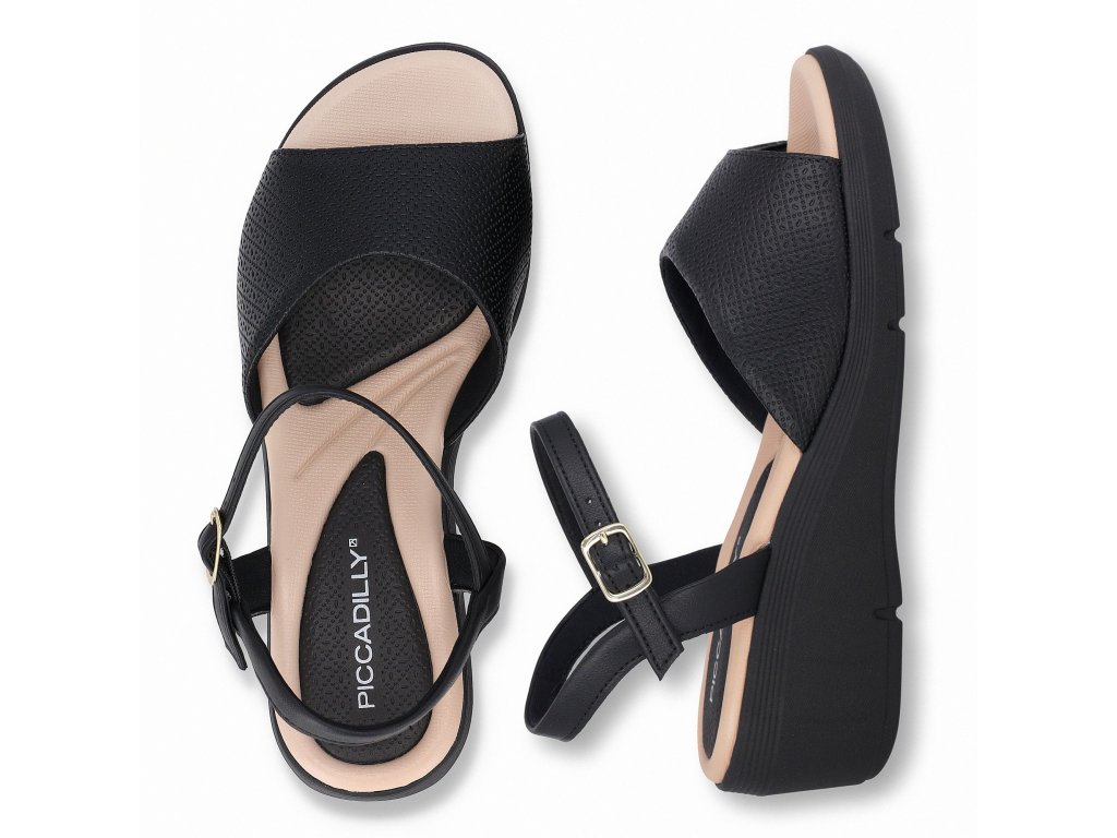 Pohodlné dámské sandály na klínku od značky PICCADILLY. Ideální volba pro širší chodidla i citlivé nohy díky pružnému materiálu a měkké stélce.
