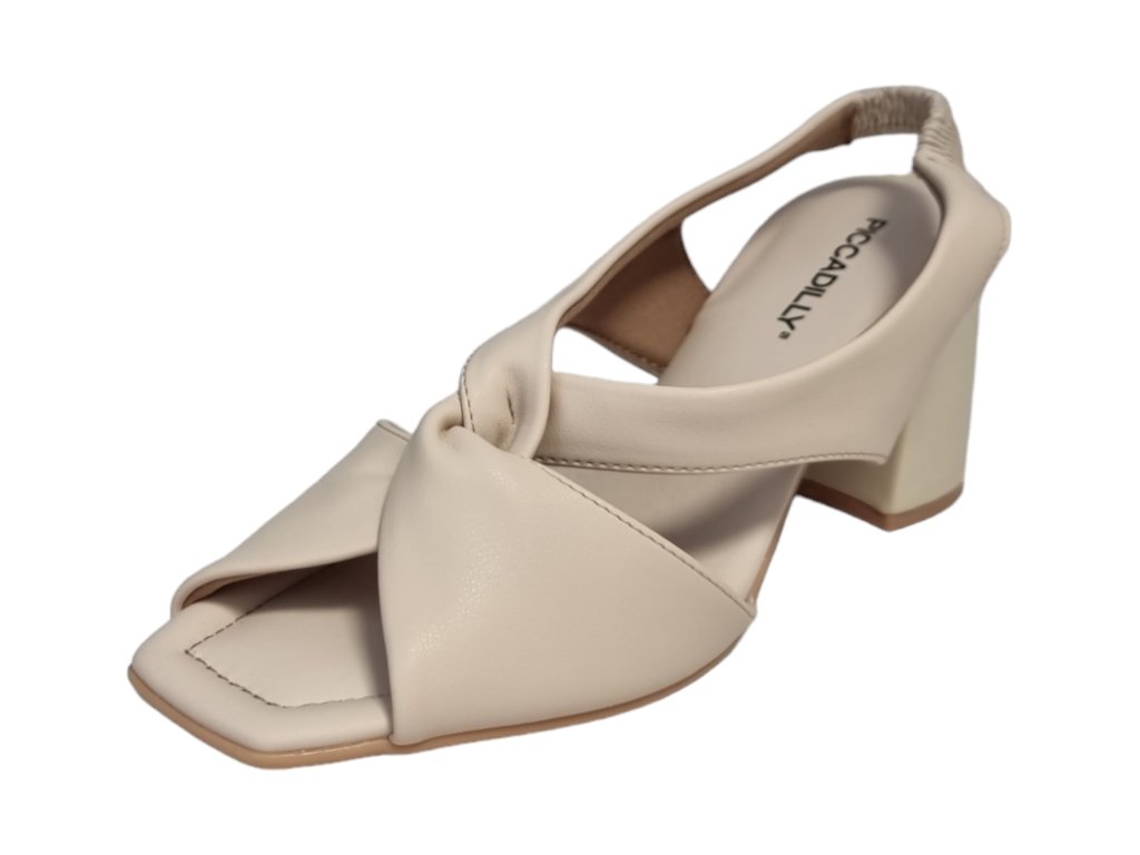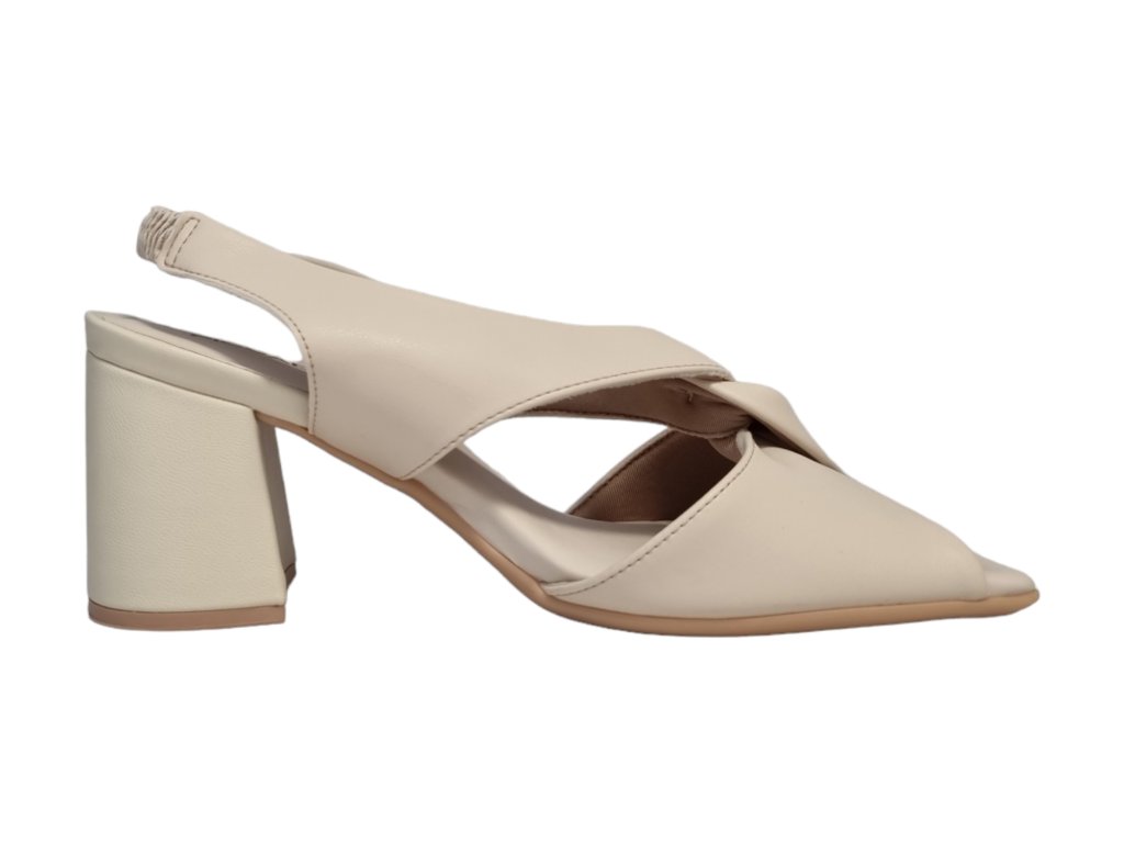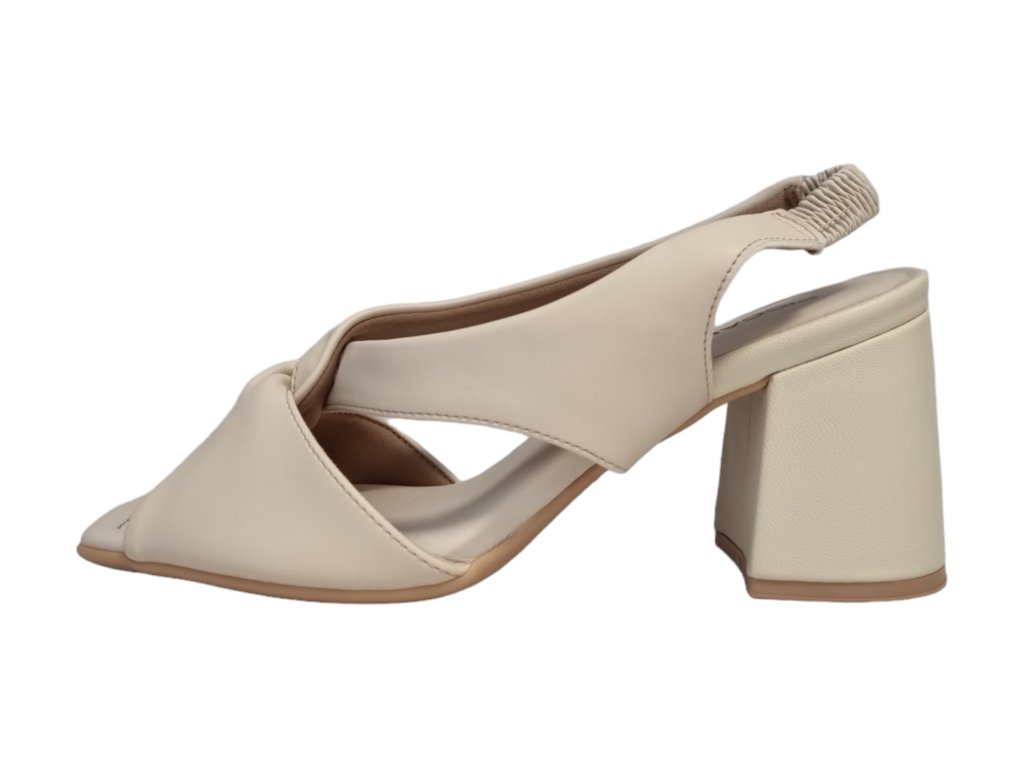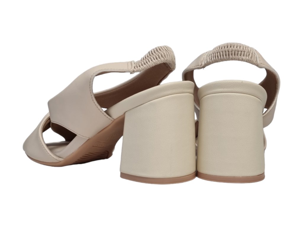 Pohodlné krémové dámské sandálky na širokém podpatku s gumovým páskem za patou.
