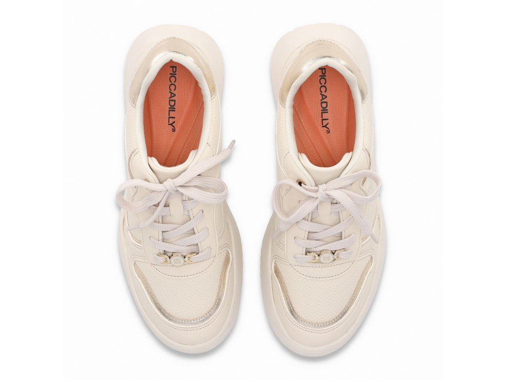 Lehké krémové tenisky s jemnými zlatými detaily pro každý den.