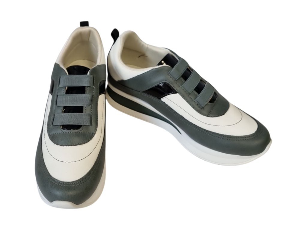 - barva zelená v kombinaci s černou a bílou na bílé podešvi