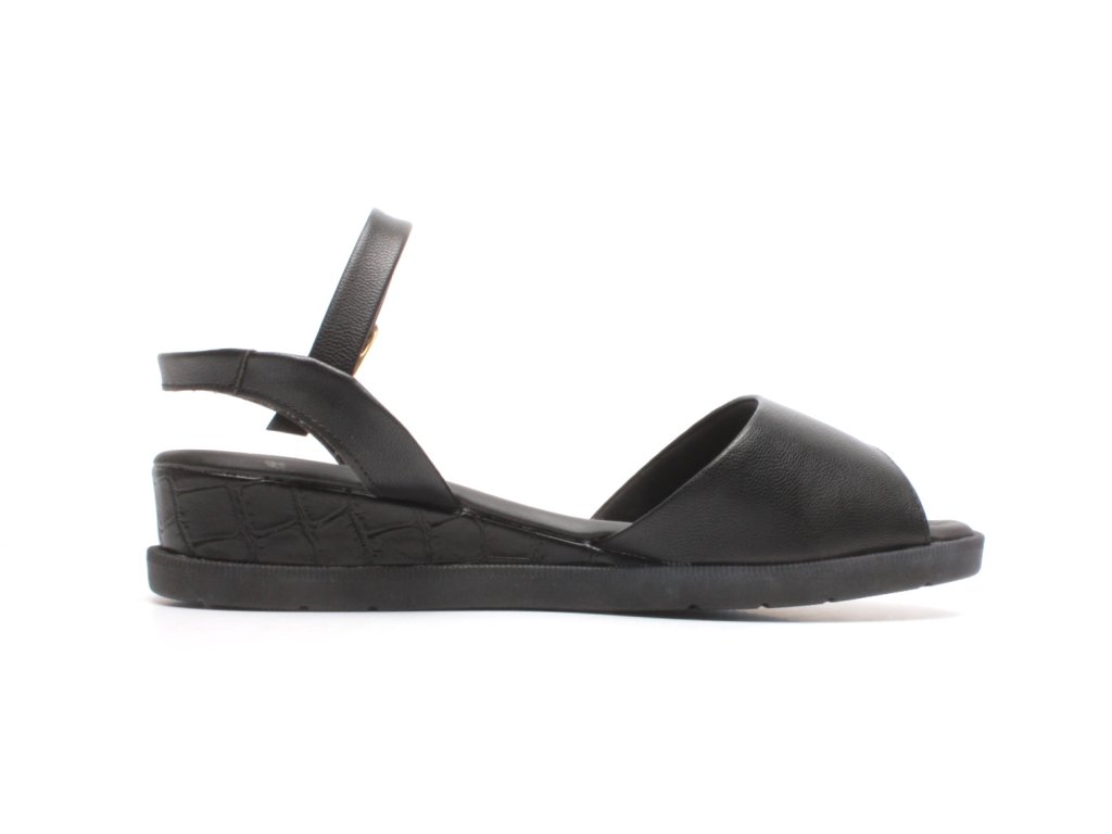 Letní dámské sandály na klínku s nastavitelným páskem kolem kotníku, vhodné i pro nohy s halluxy a jinými deformitami.
