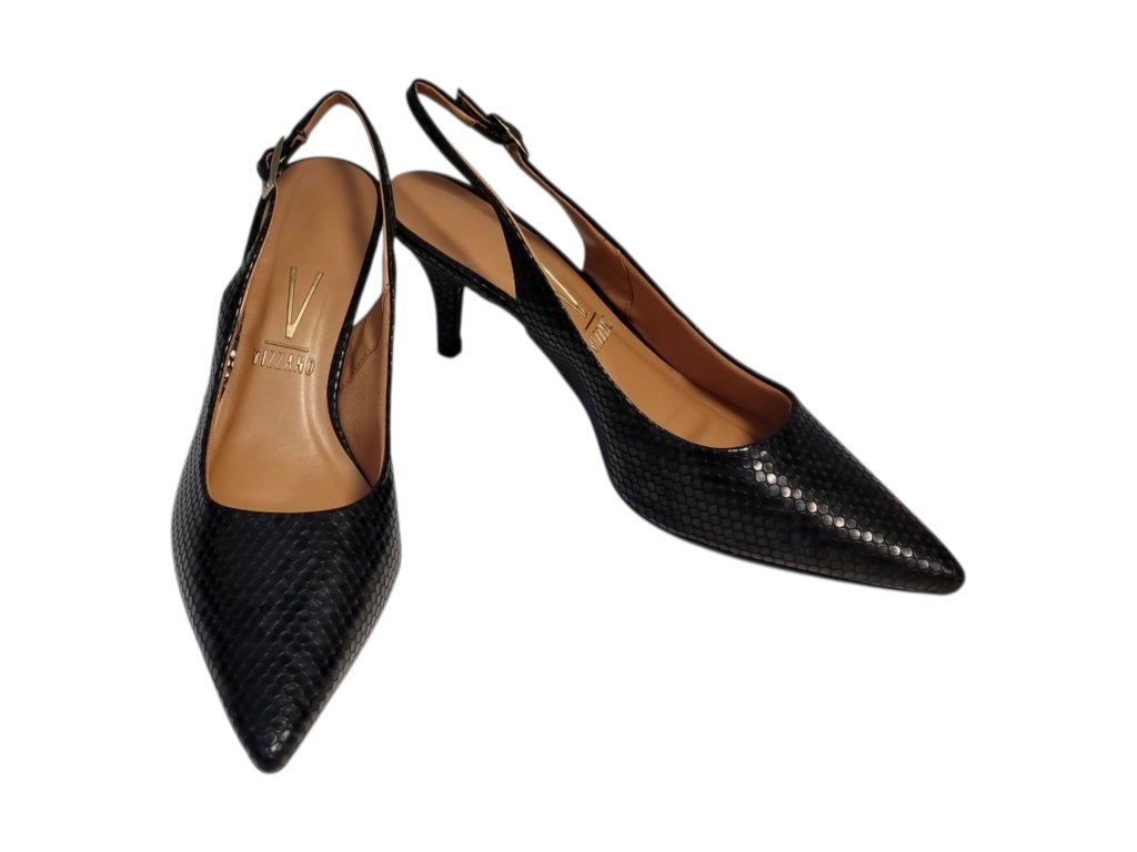 Dámské velmi elegantní sandály brazilské značky Vizzano jsou velice oblíbenou obuví. Boty jsou vyrobeny ze syntetického materiálu, s vyměkčenou stélkou. Díky nastavitelnému pásku přes patu obuv velmi dobře drží na noze. Ideální na různé společenské akce.